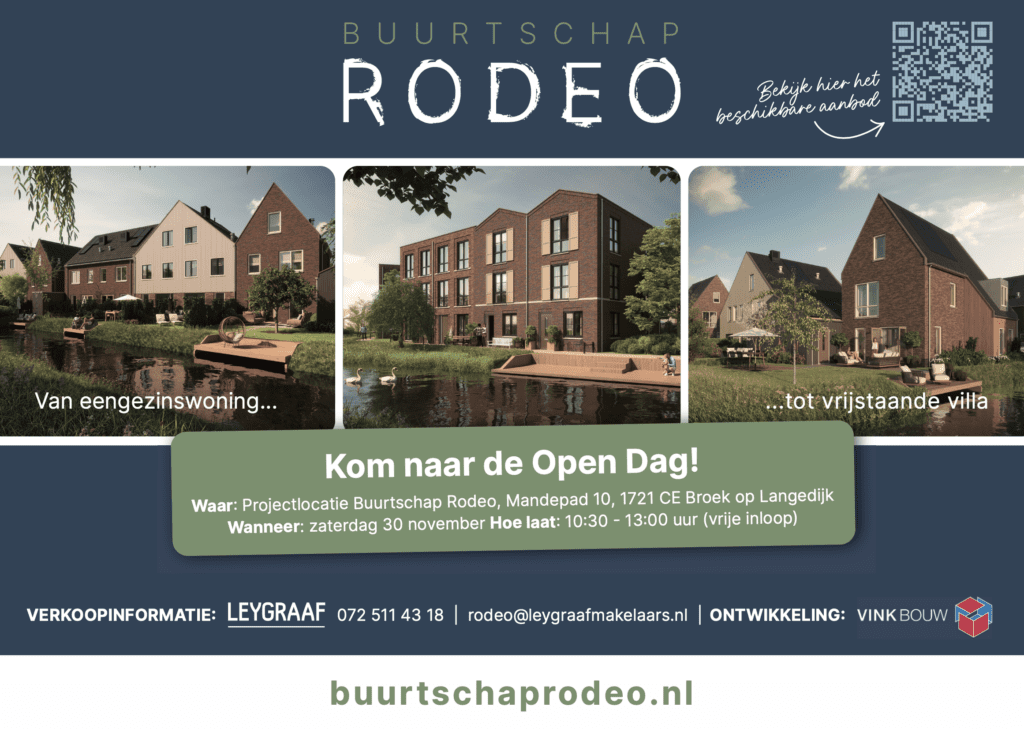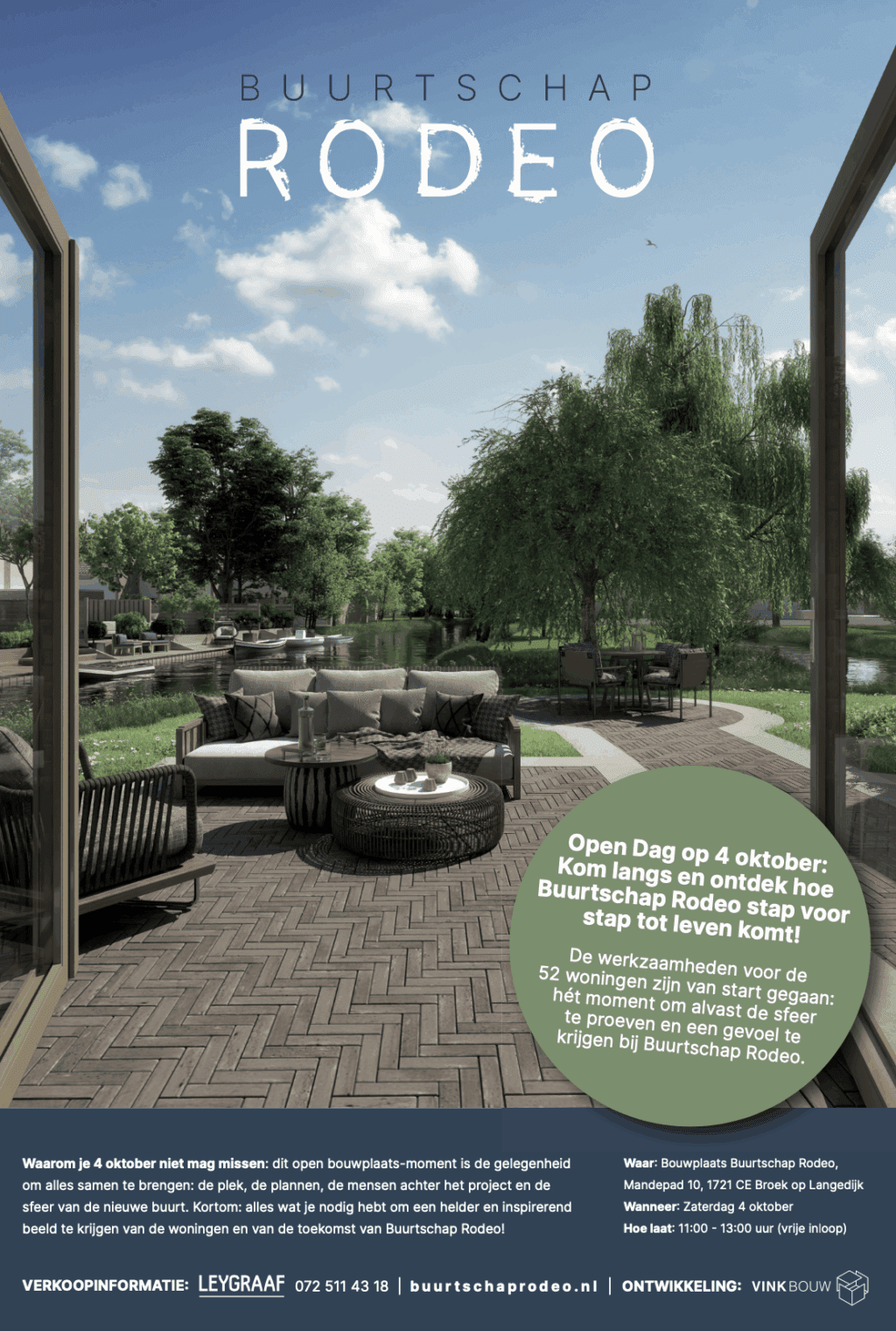 Het is zover: de werkzaamheden van Buurtschap Rodeo zijn van start gegaan! Na maanden van voorbereiden, plannen maken en ontwerpen, rollen de eerste machines binnenkort het terrein op en worden de eerste werkzaamheden zichtbaar. Een bijzonder moment dat we graag samen met jou willen vieren! Lees meer